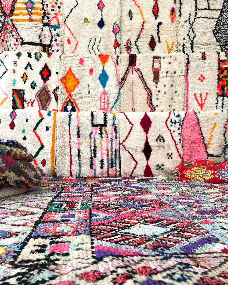 Tapis artisanaux 100 % faits main par des femmes berbères du Haut Atlas